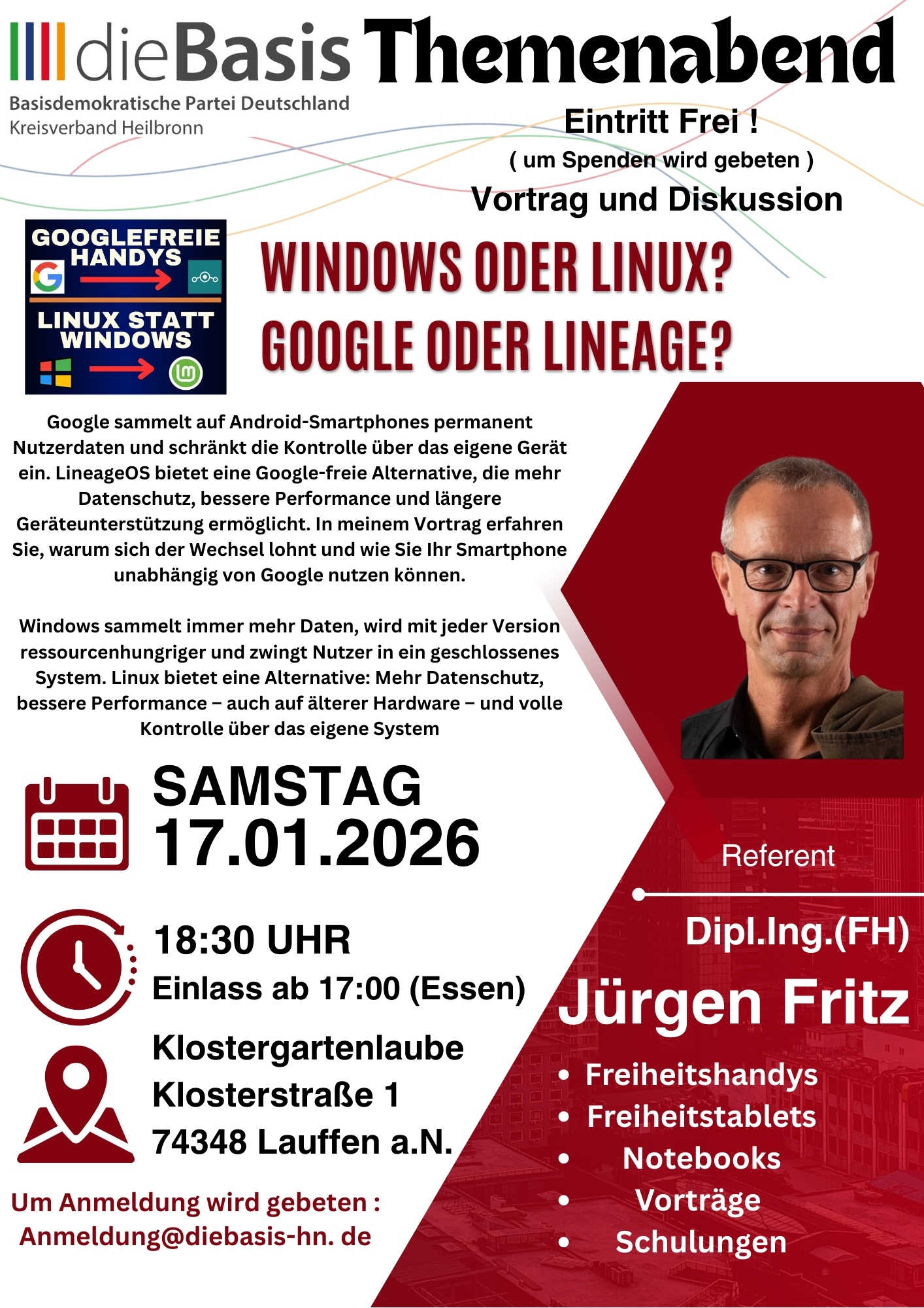 Von Windows auf Linux umsteigen Windows sammelt immer mehr Daten, wird mit jeder Version ressourcenhungriger und zwingt Nutzer in ein geschlossenes System. Linux bietet eine Alternative: Mehr Datenschutz, bessere Performance – auch auf älterer Hardware – und volle Kontrolle über das eigene System. In meinem Vortrag zeige ich Ihnen, warum sich der Umstieg lohnt und […]
